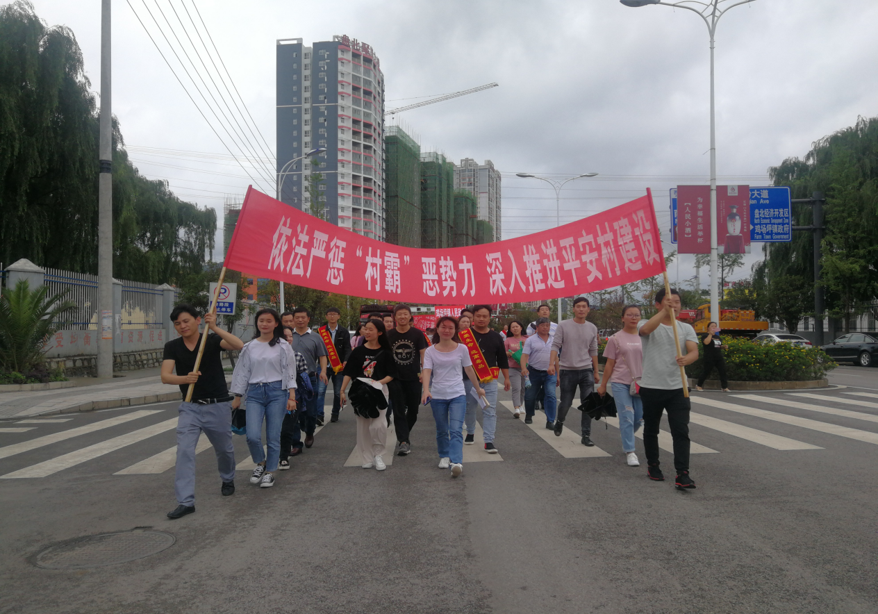 6月26日下午,为提高群众对扫黑除恶专项斗争的知晓率和参与率,盘北710公海赌赌船官网欢迎您、鸡场坪镇和鸡场坪民族中学联合开展了一次大型的扫黑除恶宣传宣传活动,此次活动主要以上街游行的方式举行。