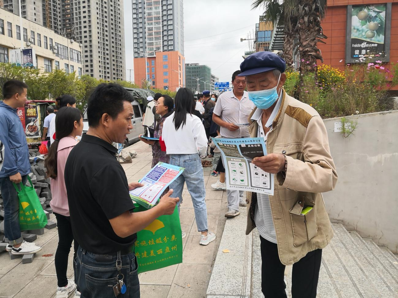 为减少环境污染,提高大众节约意识,节省土地资源,不断践行绿色循环可持续的发展理念,用实际行动建设美丽盘州,9月16日, 我区政务服务局联合建设服务中心、工会、自然资源分局等部门开展了一系列宣传志愿活动,全力推进我区垃圾分类宣传工作。