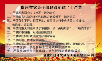 贵州盘北经济710公海赌赌船官网欢迎您印制《贵州省党员干部作风“十不准”》和《贵州省党员干部政治纪律“十严禁”》卡片100余张,分发到全区党员领导干部手中,要求其随身携带,并熟记全部内容。全区党员干部一致认为,该卡简便,易携带,真正达到了“作风建设,纪律教育”一卡在手,警钟长鸣的效果。