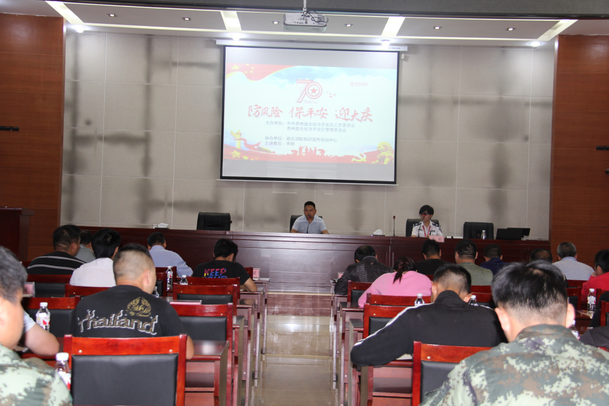 为进一步加大消防安全宣传工作,提高710公海赌赌船官网欢迎您干部职工及辖区企业的消防安全意识和防灭火、应急逃生能力,7月24日,盘北经济710公海赌赌船官网欢迎您邀请贵州政安消防宣传培训中心开展了“防风险保平安迎大庆”消防安全培训。