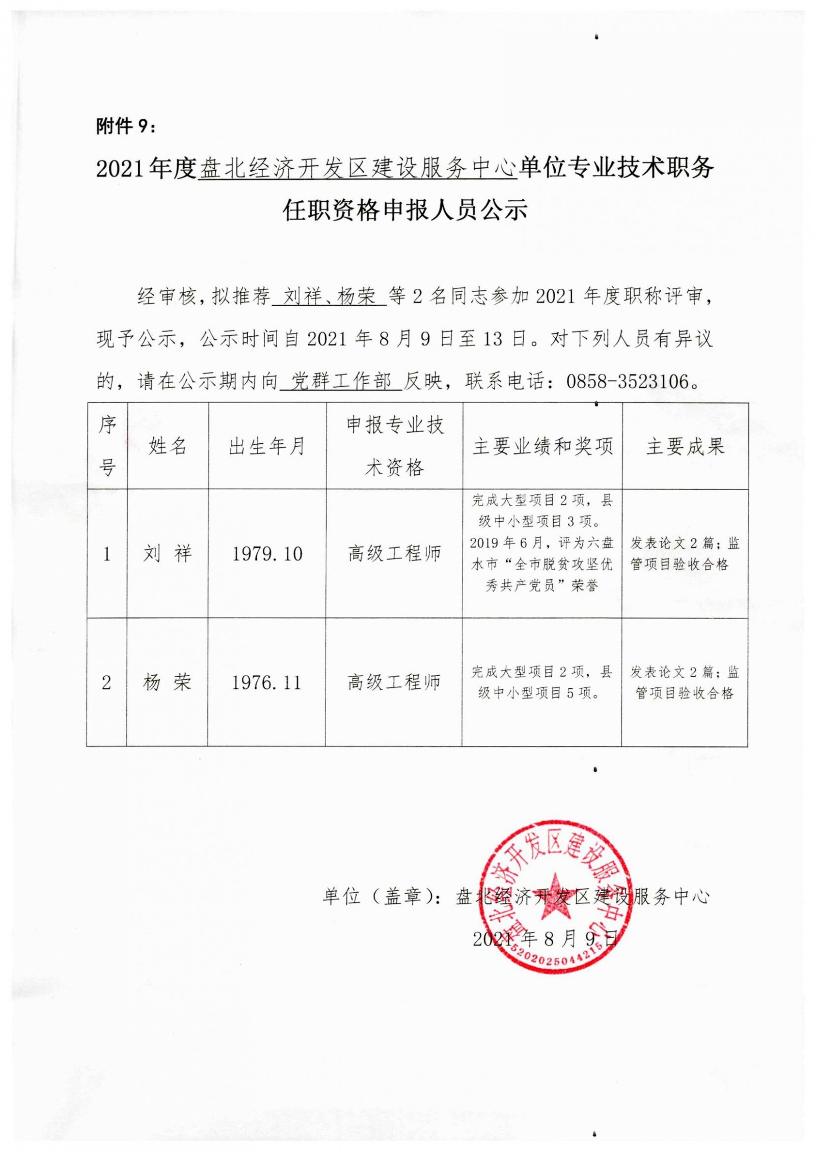 2021年度盘北经济710公海赌赌船官网欢迎您建设服务中心单位专业技术职务任职资格申报人员公示
