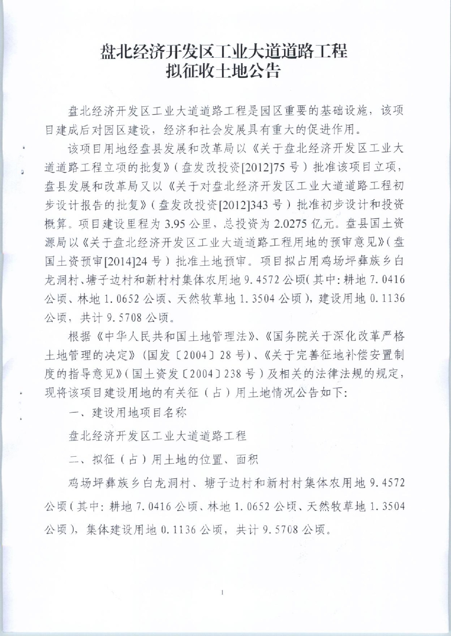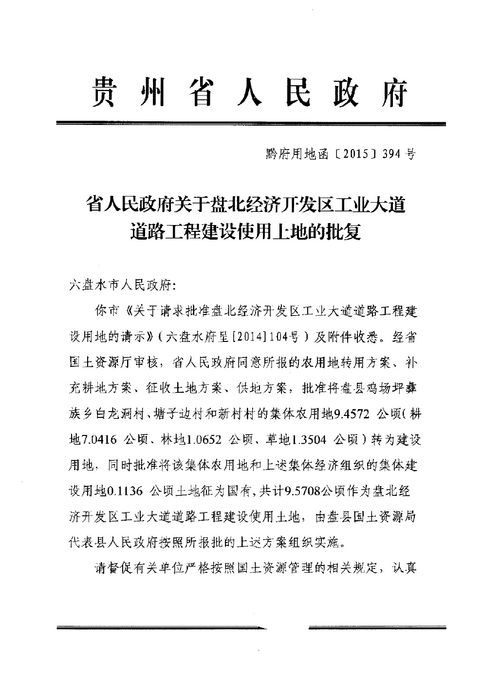 1、盘北经济710公海赌赌船官网欢迎您工业大道道路工程建设使用土地的批复
