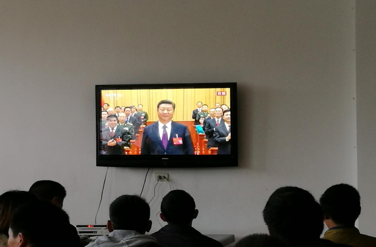 会上,习近平总书记代表第十八届中央委员会向大会作了题为《决胜全面建成小康社会夺取新时代中国特色社会主义伟大胜利》的报告,并指出中国共产党第十九次全国代表大会,是在全面建成小康社会决胜阶段、中国特色社会主义进入新时代的关键时期召开的一次十分重要的大会。现场大家仔细聆听习近平总书记对过去五年以来的工作总结和对“不忘初心,牢记使命,高举中国特色社会主义伟大旗帜,决胜全面建成小康社会,夺取新时代中国特色社会主义伟大胜利,为实现中华民族伟大复兴的中国梦不懈奋斗。”主题的宣示 。报告描绘了未来的发展方向,对我国今后的发展具有极其深远的影响和现实意义。